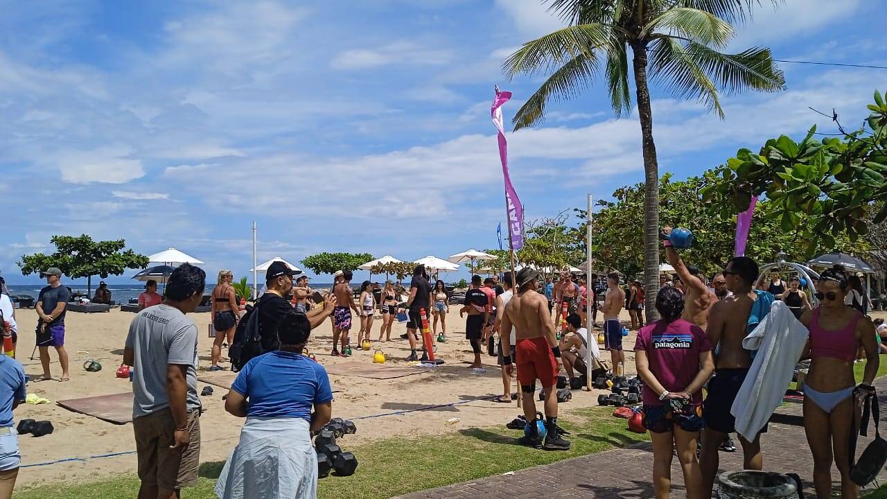 Bali, Kabar1News.com —Pergelaran olahraga angkat besi pantai ramaikan pantai Sol By Melia Hotel, Benoa pada, Minggu 4 Desember 2022.