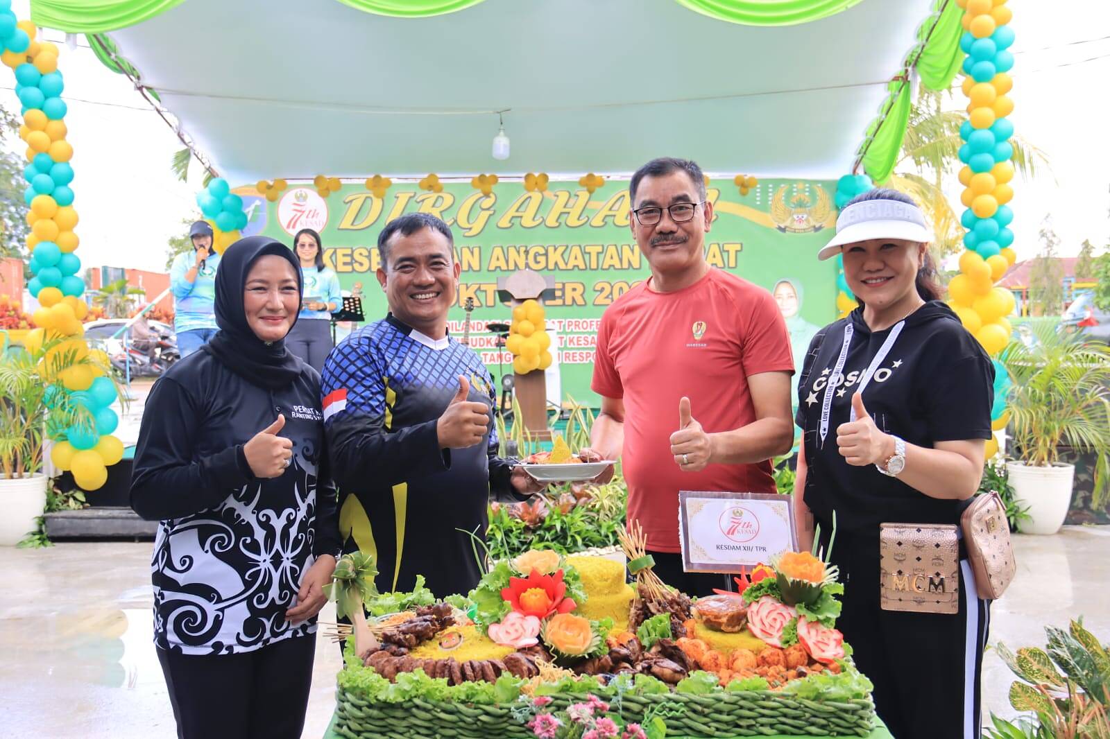 Syukuran kali ini dihadiri langsung oleh Pangdam XII/Tpr Mayjen TNI Sulaiman Agusto, S.I.P., M.M., Kasdam XII/Tpr Brigjen TNI Djauhari, S.E., M.M., para Asisten dan Kabalak serta Ketua Persit Kartika Chandra Kirana Daerah XII/Tpr.