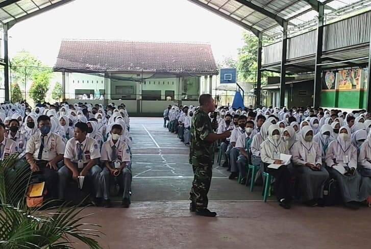 Blitar, kabar1news.com – Dalam upaya membentuk karakter generasi muda ditingkat SMA, Babinsa Koramil Tipe B 0808/06 Srengat Kodim 0808/Blitar, Serka Matwira Atmaja memberikan materi wawasan kebangsaan dengan tema “Mengembangkan potensi karakter siswa untuk mewujudkan profil pelajar Pancasilais” dalam rangka Masa Pengenalan Lingkungan Sekolah (MPLS) bagi siswa-siswi Kelas X SMAN 1 Srengat.
