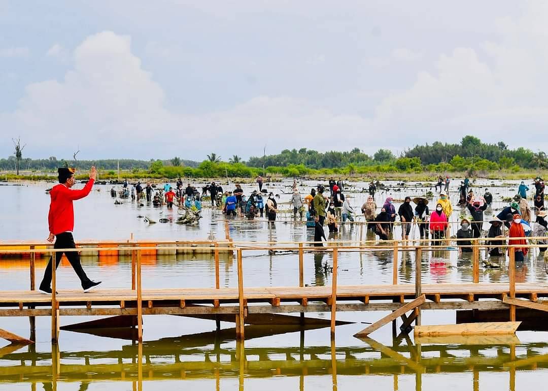 Presiden Joko Widodo datang ke Desa Bebatu untuk melakukan penanaman mangrove bersama masyarakat setempat dan para penggiat lingkungan. Selain itu, sejumlah duta besar negara sahabat tampak turut serta menanam mangrove.