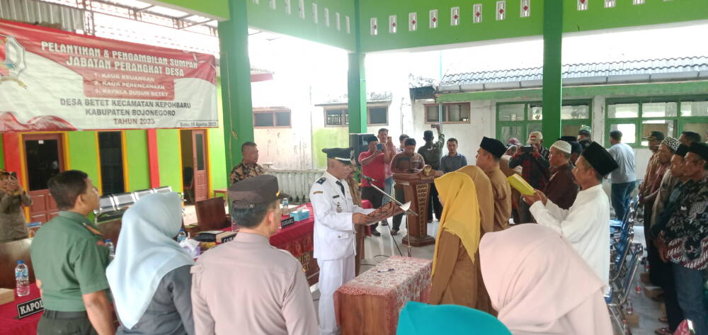 Kepala Desa Betet M. Makruf menyampaikan, untuk mengisi kekosongan perangkat desa, pihaknya melantik dan mengambil sumpah jabatan 3 perangkat desa (Kaur Keuangan, Kaur Perencanaan, Kepala Dusun Betet).