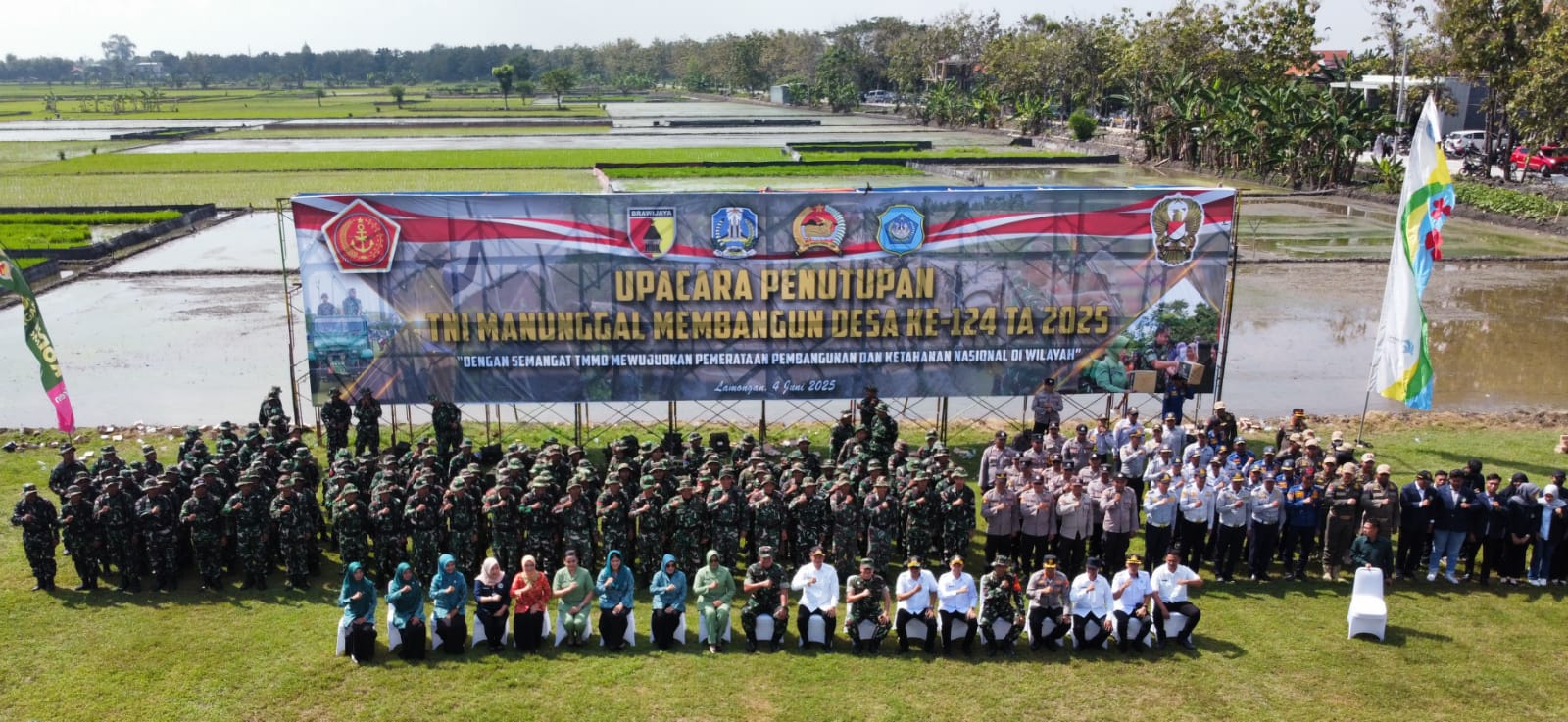 Lamongan, Kabar1News.com – Program pembangunan merata hingga desa telah berlangsung dengan terjunnya TNI ke desa-desa bersama rakyat membangun desa. Program TNI Manunggal Membangun Desa (TMMD) ke-124 tahun 2025 telah usai dan ditutup, sebagai tanda selesainya program tersebut.