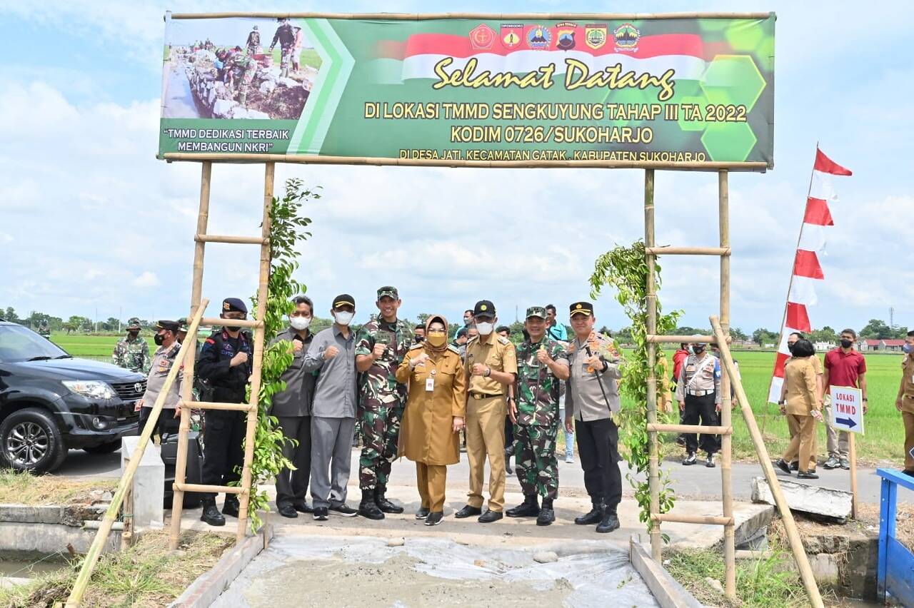 Sukoharjo, kabar1news.com – (11/10/2022)-Kodim 0726/Sukoharjo menggelar TMMD Sengkuyung Tahap III Tahun 2022, TMMD kali ini mengambil lokasi di desa Jati Kecamatan Gatak, Kabupaten Sukoharjo. Upacara Pembukaan TMMD Sengkuyung Tahap III Tahun 2022 Kodim 0726/Sukoharjo kali ini di gelar di Lapangan desa Jati, Kec. Gatak, Selasa (11/10/22).
