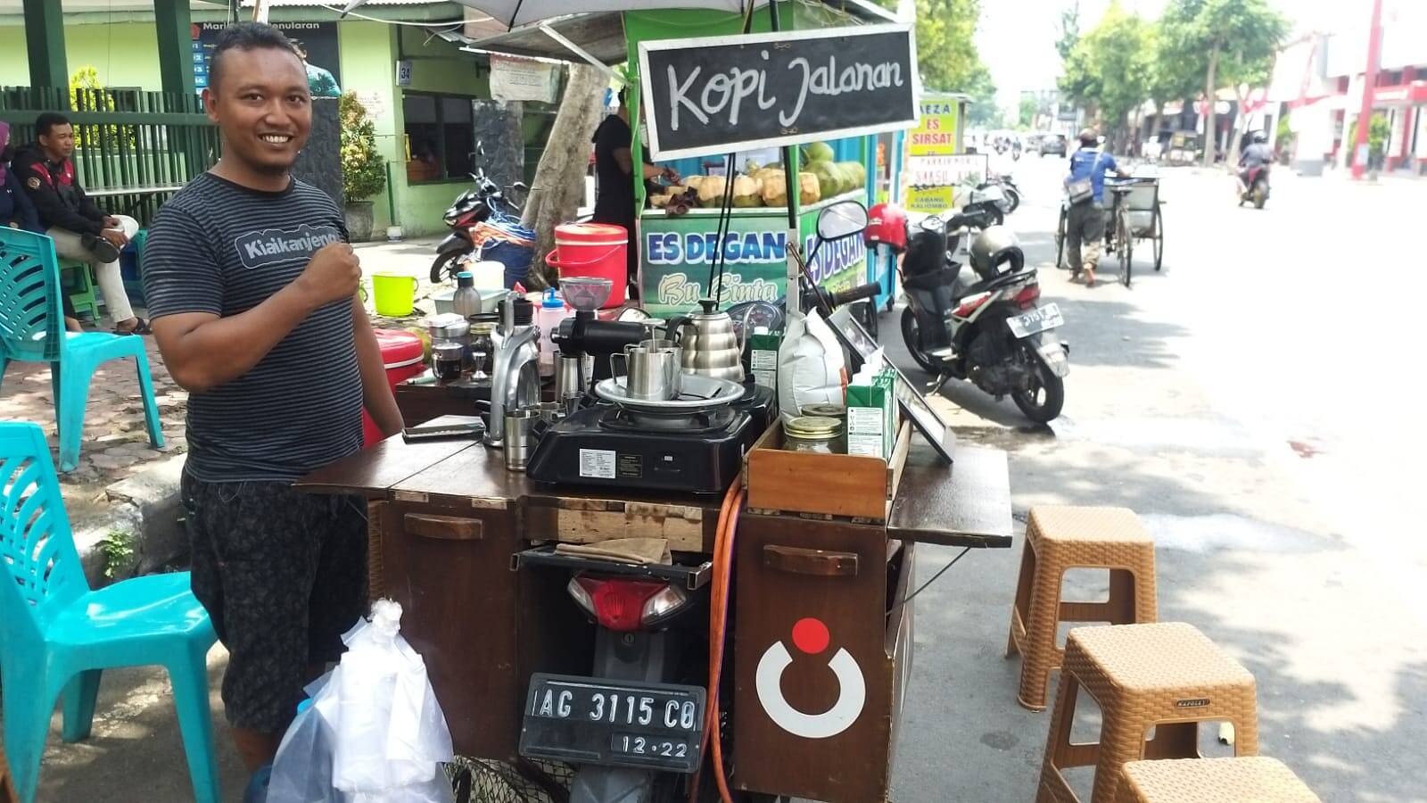 “Setahun ini saya beranikan diri memulai usaha dengan apa yang saya punya. Diawali penikmat kopi, saya mengkreatifkan sepeda motor dan melengkapinya dengan komponen pembuat kopi,” ujar Ryan kepala rumah tangga satu anak ini.