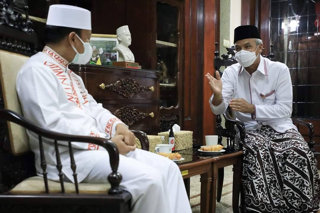 SEMARANG, kabar1news.com – Sarung batik yang dikenakan Gubernur Jawa Tengah Ganjar Pranowo menarik perhatian Ustaz Das’ad Latif saat bersilaturahim di Rumah Dinas Puri Gedeh, Jumat (22/10/2021). Ustaz asal Sulawesi Selatan itu memuji sarung yang diproduksi santri dari Solo tersebut.