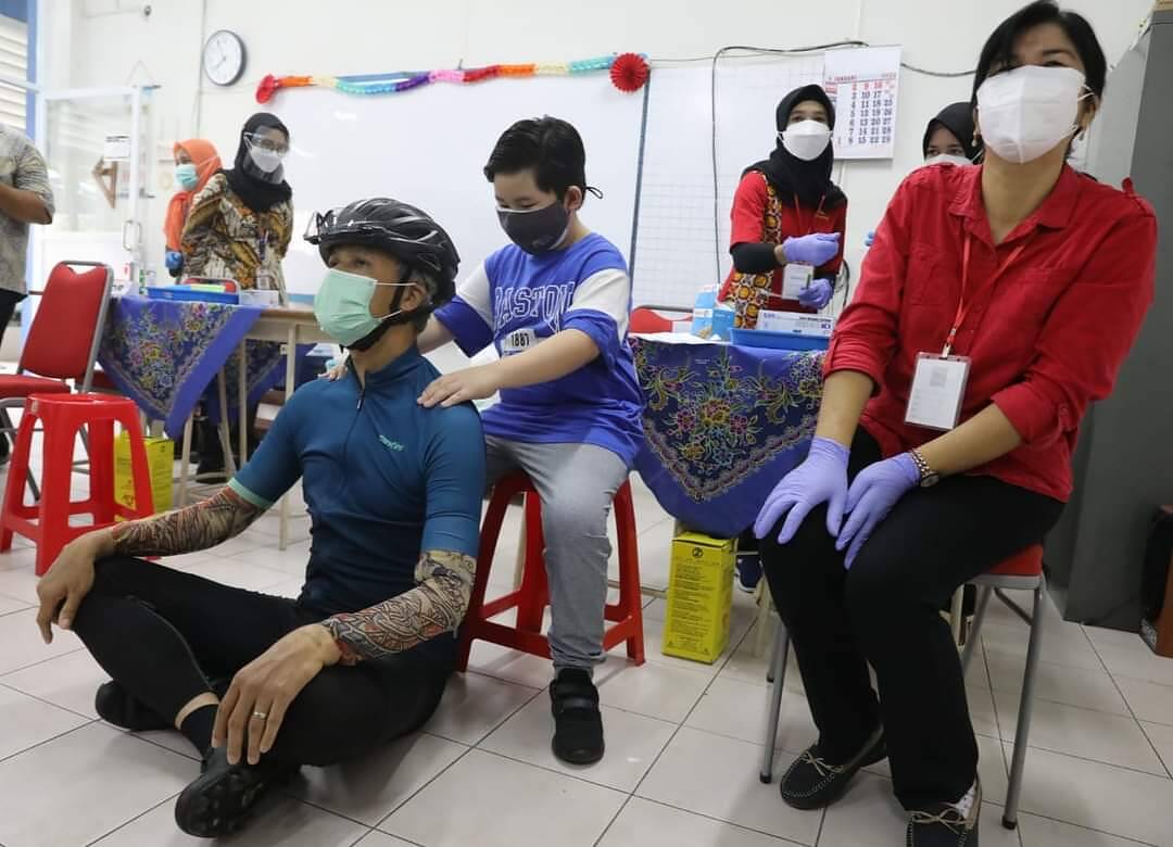 “Nggak. Tidak tahu (sudah disuntik), tidak kerasa kok,” ujar Dylan yang belum sadar kalau ia sudah disuntik vaksin dosis pertama.