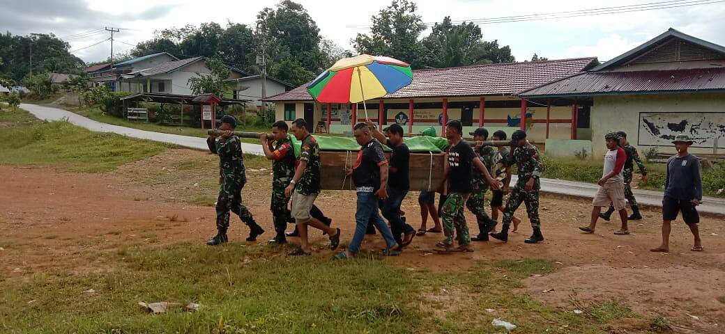 Sanggau, Kalbar, kabar1news.com – Sinergitas antara anggota TNI dan rakyat di wilayah perbatasan RI-Malaysia semakin terlihat akrab, Keakraban dan sinergitas itu terlihat ketika Pos Segumun Satuan Tugas Pengamanan Perbatasan (satgas pamtas) RI-Malaysia Yonif 645/Gardatama Yudha dipimpin Serda Jusman Nainggolan beserta 4 (empat) orang anggota bersama Tokoh masyarakat, tokoh adat Dusun Segumun dan masyarakat segumun membantu prosesi pemakaman salah seorang warga perbatasan (kepala adat segumun dogim 70 tahun) dekat dan termasuk daerah binaan Pos Segumun, Dusun Segumun Desa Lubuk Sabuk Kecamatan Sekayam Kabupaten Sanggau.