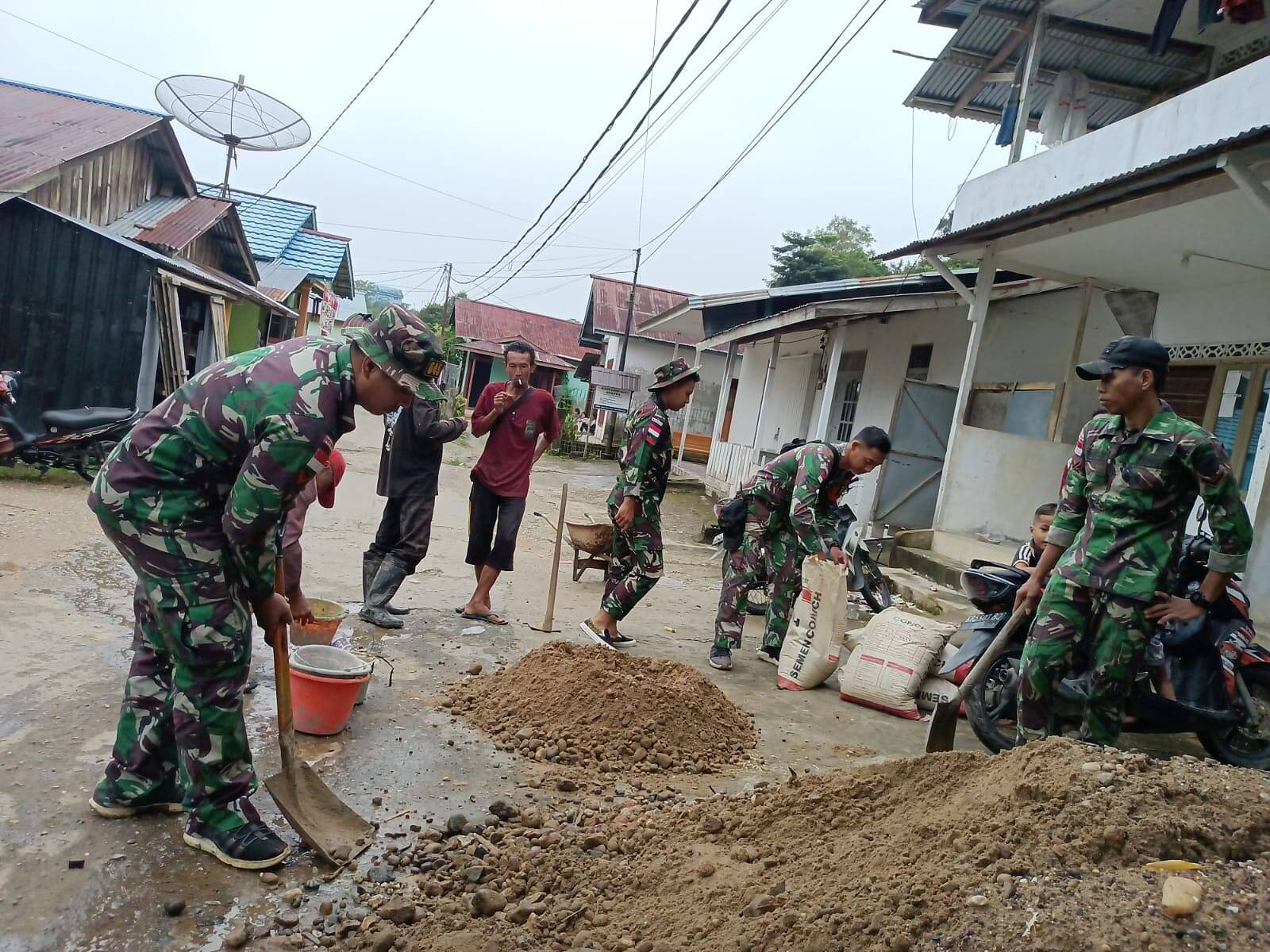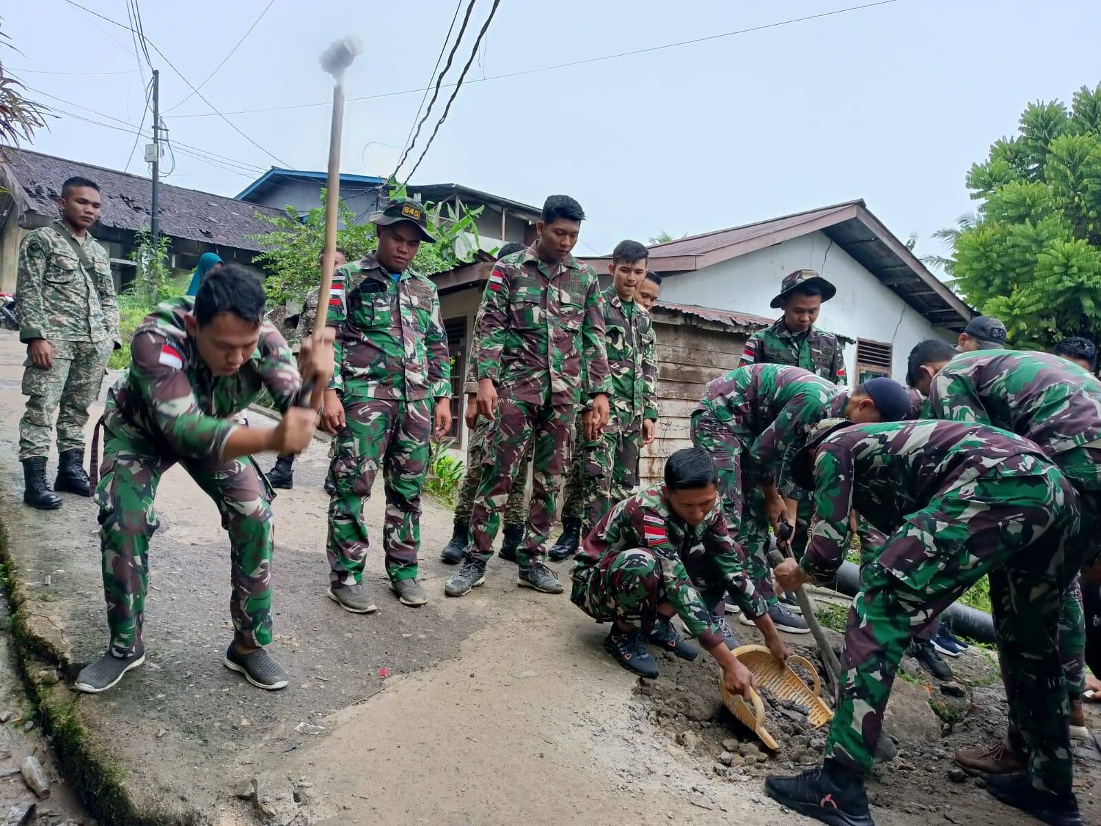 Wujud Peduli, Satgas Pamtas Yonif 645/Gty Karya Bakti Perbaikan Jalan Kampung dan Saluran Air