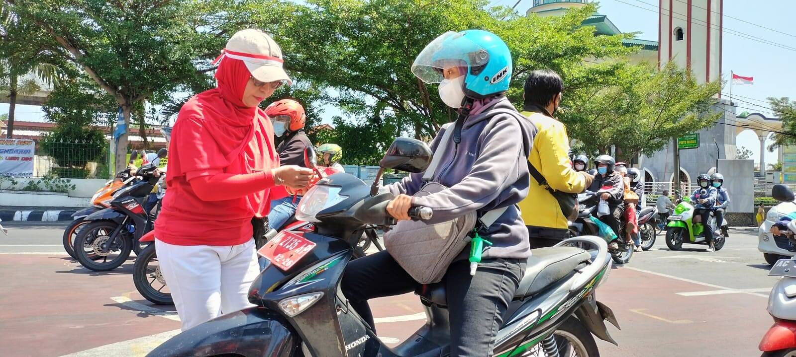 “Hari ini puluhan gabungan Kesbangpol Kota Kediri, JMP, FKBN dan driver ojek online Maxim Kediri berbagi ribuan bendera merah putih di 3 lokasi yakni di Lampu merah Rumah sakit Baptis, Alun-alun Kota Kediri dan Barat Sungai. Alhamdulilah acara berjalan lancar.” ucap Vazmico Ginataka. (Kris/red )