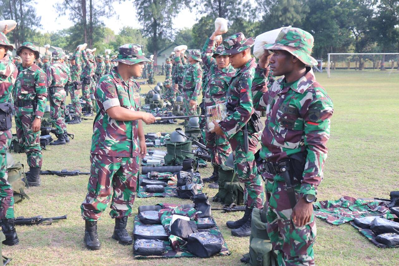 Sekaligus kali ini Komandan, didampingi Wadan serta Danki dengan Pa Staf memeriksa isi protap ransel prajurit yang bersifat perorangan, seperti pakaian, natura maupun perlengkapan lainnya yang telah ditentukan dan dilanjutkan kegiatan tersebut pembacaan nominatif Satgas Yonif 407/PK.(pen407/red)